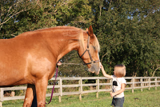 | I like the girls upper body positioning and her gently touch on the horse's nose |
